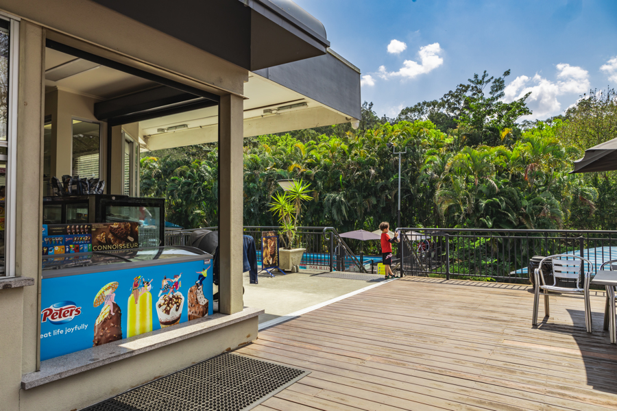 Food ranges from hot pies and sausage rolls to cake of the day. Also available are drinks (hot and cold), ice creams, and a selection of lollies as well as chips.